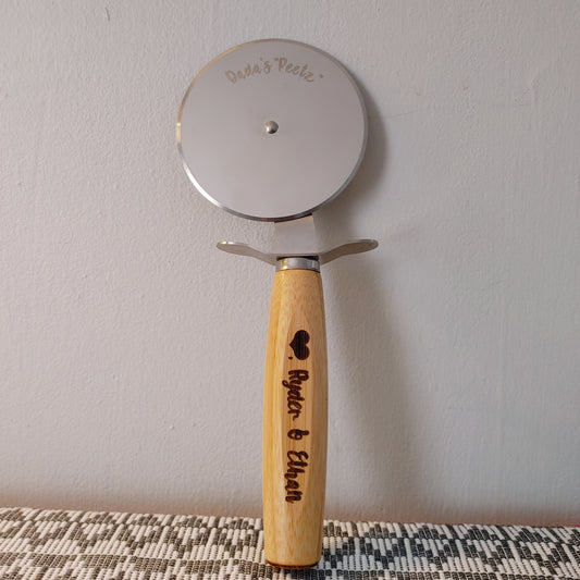 Personalized Laser Engraved Bamboo & Steel Pizza Cutter