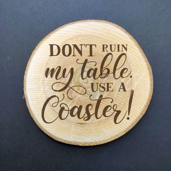 The wooden coasters are untreated. The surface is sanded for a smooth finish.