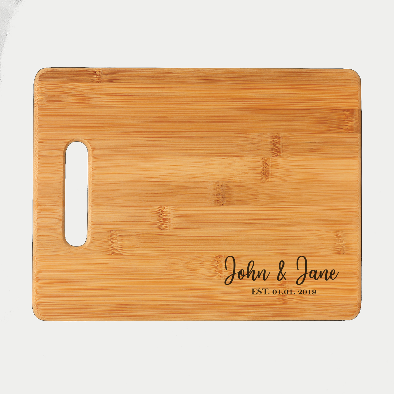 Cutting boards engraved with first and last names make memorable gifts for newly weds, house warming gifts, hostess gifts or gifts for real estate clients.