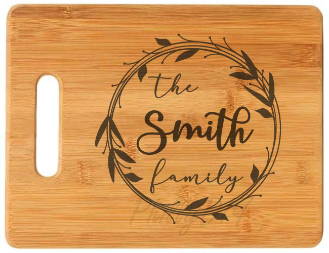 Cutting boards engraved with family monograms make memorable gifts for newly weds, house warming gifts, hostess gifts, gifts for real estate clients or even corporate clients.