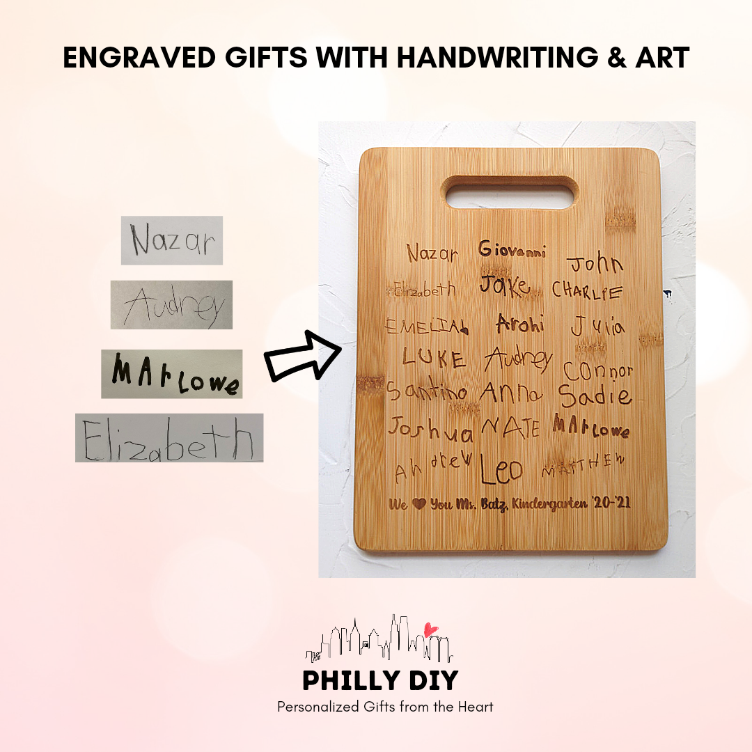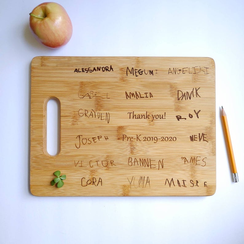 Custom Cutting Board Engraved With Kid’s Signatures For Teachers