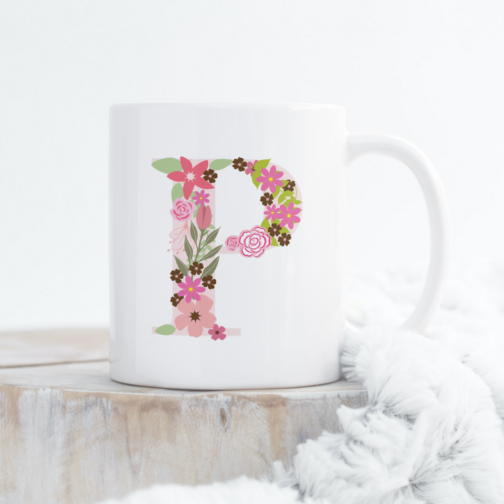 Floral Initial Personalized Mug
