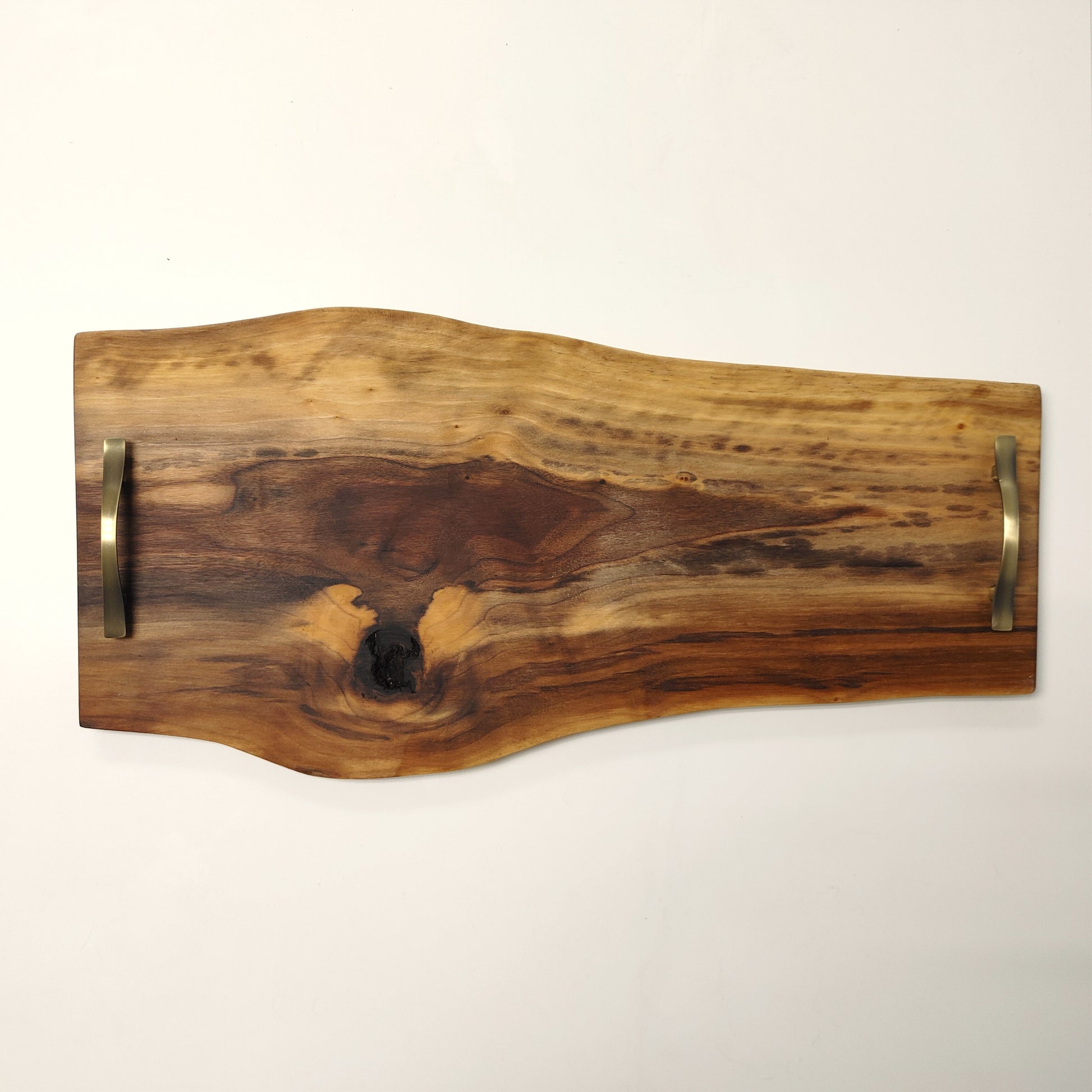 The live edge boards are hand crafted from locally sourced, Black Walnut wood. We carefully select the pieces for their beautiful graining and unique features. Each board is then cut to size, prepped and finished to become a cutting board. We then condition it with food grade mineral oil or food safe conditioner. After curing for 3-4 days, they are ready for use.